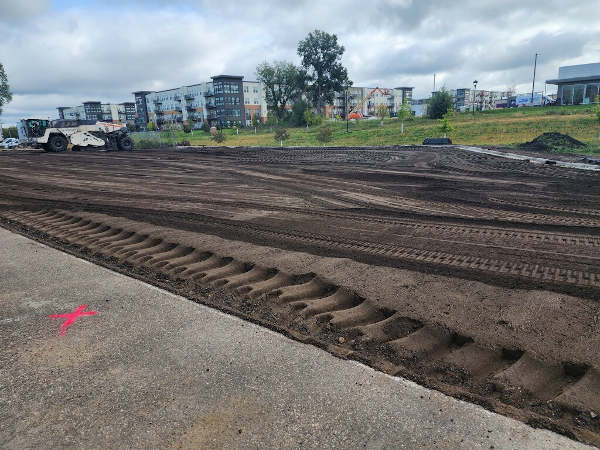 Grading for Improved Drainage: Strategic grading was carried out on specific parking lot sections, ensuring a corrected slope that promotes efficient water runoff and minimizes accumulation.
